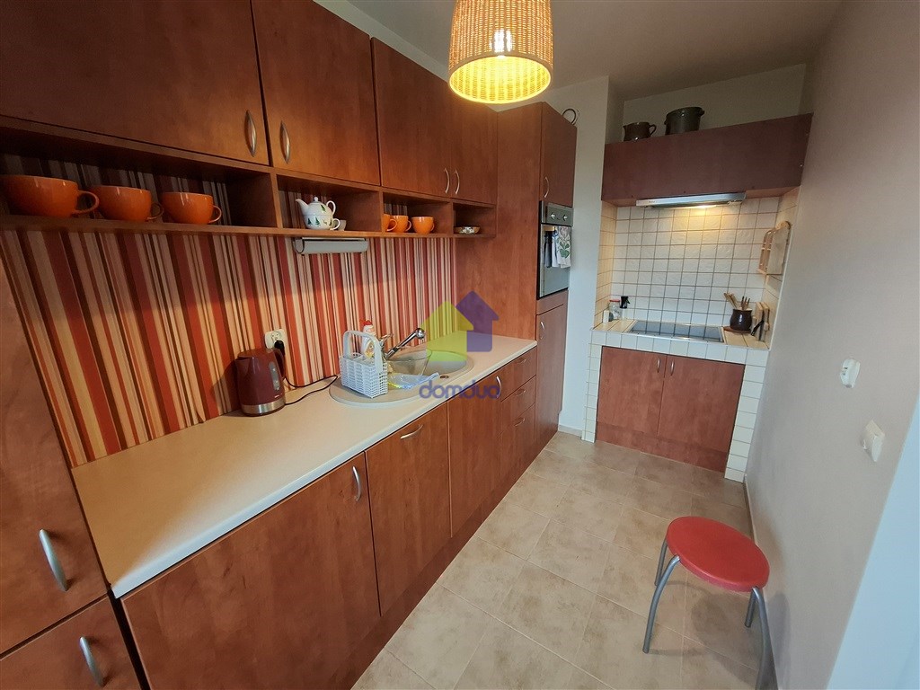 Kuchnia jest częściowo połączona z salonem, umeblowana i wyposażona w piekarnik, płytę, lodówkę i zmywarkę.
