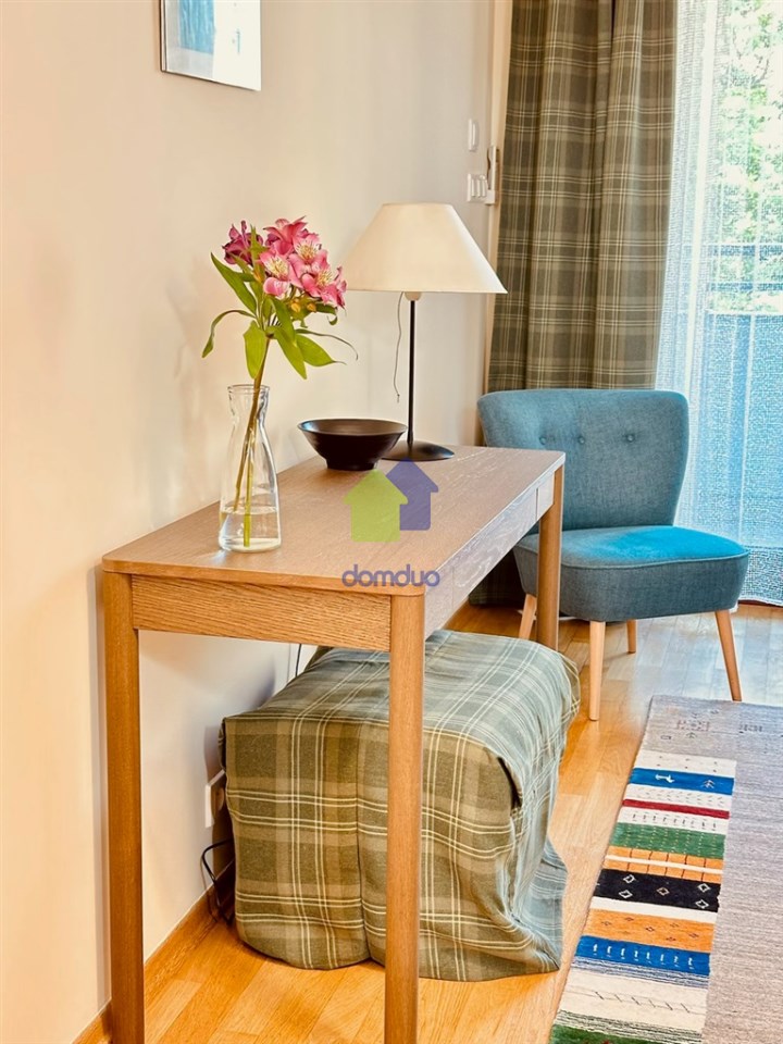 Apartament cechuje przestronny funkcjonalny rozkład; ze względu na jedną sypialnię, idealny dla pary. Wykończenia w bardzo dobrym standardzie.