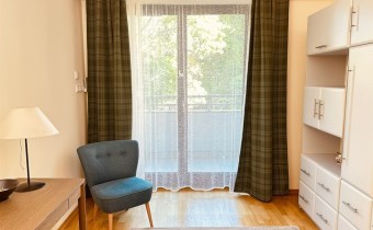 Z salonu wychodzi się na duży balkon (ok. 8 m2) - ekspozycja wschodnia z widokiem na skwer.